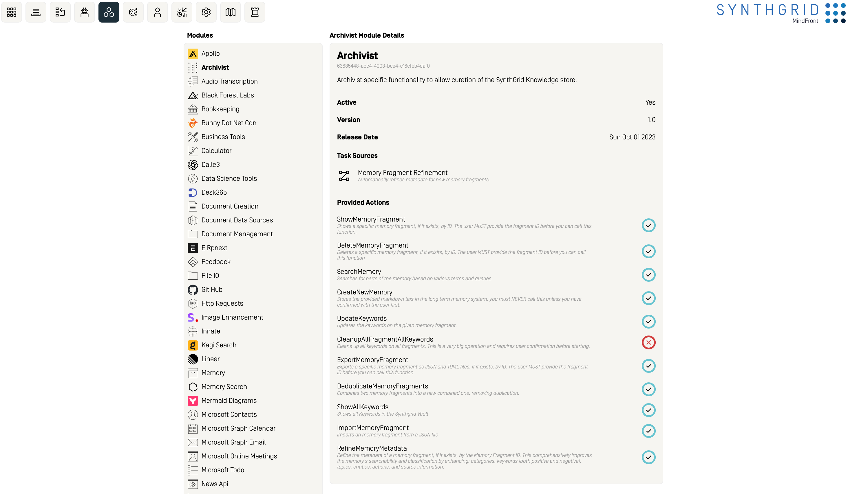 Each Module is typically associated with one tool or software platform used within your SynthGrid.