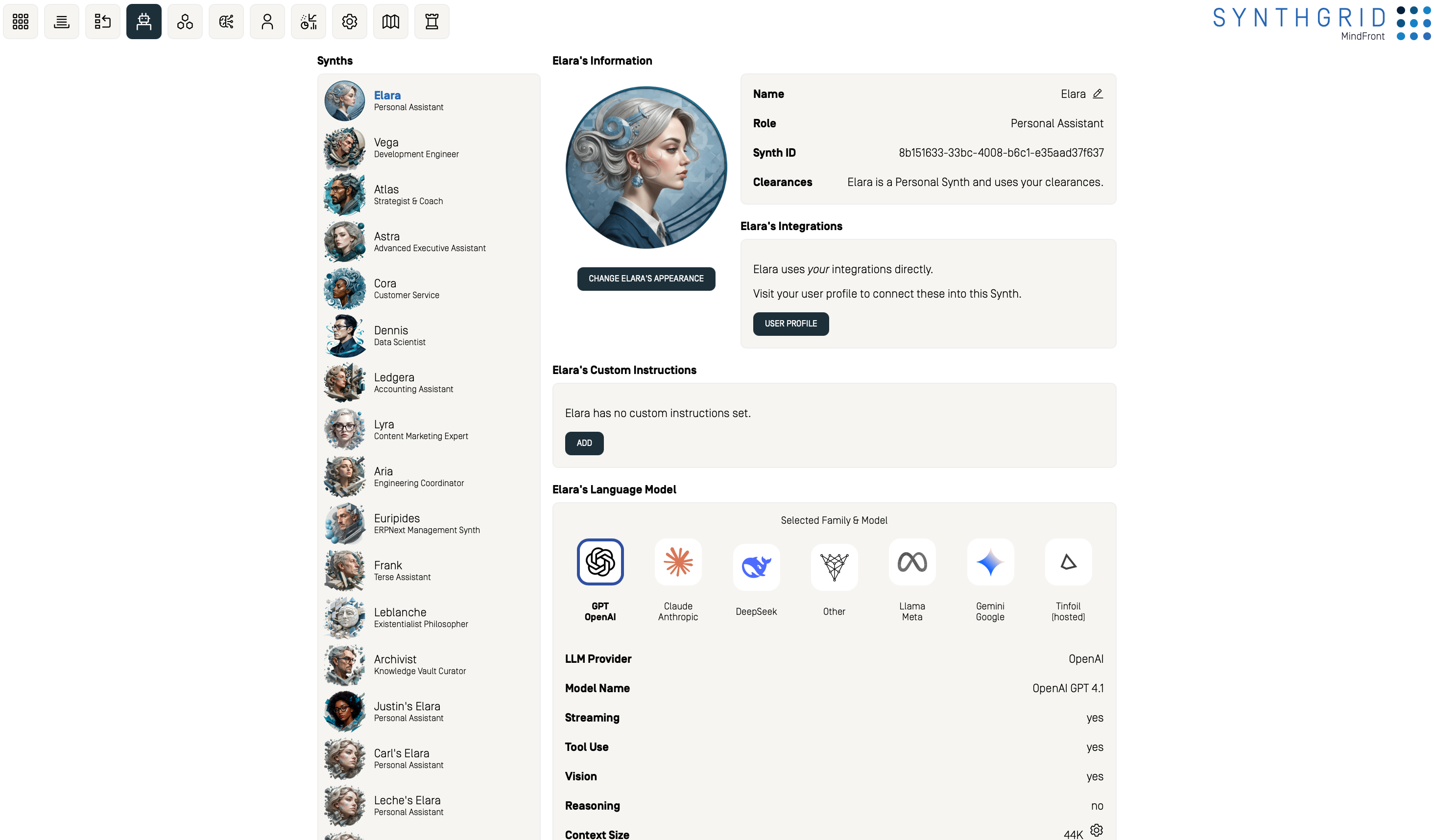 Each Synth has a unique set of modules associated with it, used to accomplish Tasks and fulfil a specific role in your business.